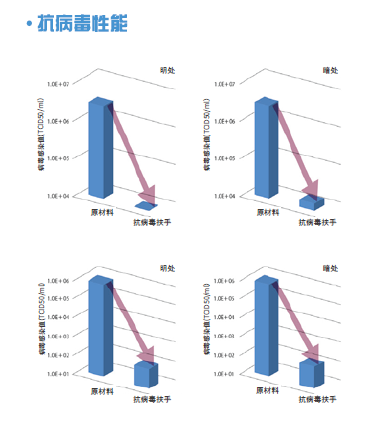NAKA扶手抗病毒性:8小時(shí)能達(dá)到99%以上的抗病毒效果:原來的樹脂扶手與抗病毒配方的樹脂扶手在亮的地方與暗的地方分開進(jìn)行了測(cè)試。隨著時(shí)間推移,抗病毒配方的樹脂扶手有了明顯的效果,8小時(shí)后觀測(cè)出了99%以上的抗病毒效果。根據(jù)安裝場(chǎng)所及使用條件,其結(jié)果是不同的,使用抗病毒扶手,降低了傳染病的風(fēng)險(xiǎn),可作為維持衛(wèi)生清潔環(huán)境的產(chǎn)品所使用。如圖三