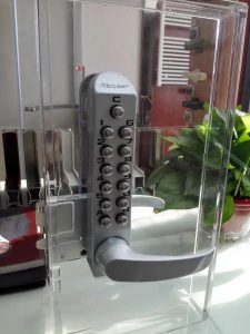 產(chǎn)品簡介:KEYLEX機(jī)械密碼鎖為全機(jī)械式,不用電池和電源,也不用布線,安裝簡單,可以用12個(gè)按鈕組合記憶密碼,任意設(shè)置,按鈕是特殊加工的不銹鋼按鈕,不會殘留下使用的痕跡。機(jī)械密碼鎖防盜,美觀,入戶門首選!